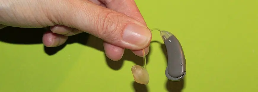 Il s'agit d'un petit appareil qui se place derrière le pavillon de l'oreille, avec un fil (tube) qui entre à l'intérieur de l'oreille.